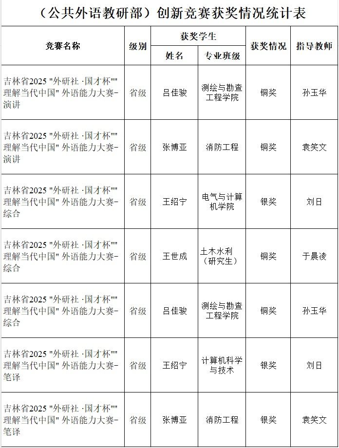 “外研社•国才杯”“理解当代中国”外语能力大赛是吉林省乃至全国极具影响力的外语学科赛事,该赛事已入选《全国普通高校大学生竞赛分析报告》竞赛目录,是全国最权威的外语赛事之一,也是学校A类三星赛事之一。大赛以习近平新时代中国特色社会主义思想为指导,以“理解当代中国”为核心主题,旨在推动“三进”工作、创新课程思政,深化教育改革,引导青年学生用外语讲好中国故事、传播中国声音。大赛也是检验高校外语教学质量与学生综合素养的重要平台,参赛选手需在语言应用、知识储备、跨文化沟通等多方面展现综合实力。